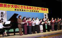 筆坂秀世参議院議員・日本共産党政策委員長を迎えての「つくる会」演説会は1月11日、長崎市民会館・文化ホールで開かれました。 オープニングは「うたごえ」の合唱です。 |