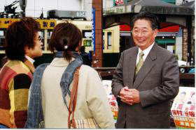 高村候補の訴えを聞き、激励に駆け寄ってきた教え子の光野真子さん(21歳 諌早市在住)は、「生徒みんなから好かれている先生でした。諌早湾干潟など環境を守るためにがんばってほしい」と期待を寄せました。