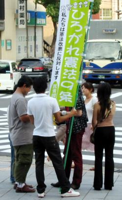 9月3日、長崎市の「夢彩都」(ゆめさいと)前で、民青同盟の青年たちが、街頭シール投票行動を行いました。