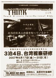 問題の研修会は、島原青年会議所が、二〇〇七年度青少年育成事業として計画する三泊四日の台湾視察です。視察研修では、青年会議所製作の「靖国DVD」の視聴も研修に入っています。チラシによると島原市、雲仙市、南島原市と各教育委員会が後援しています。