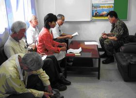 大村生活と健康を守る会副会長の竹尾一夫さんは、「陸士出身である私は戦争に参加し、同僚や友人を失くした。二度と戦争をしてはいけない。大村の部隊からもイラクに派遣された。全員無事に帰ってきたのは憲法九条があったからだ。九条はあなたがたも守っている。九条がなくなったら自衛隊は海外で戦争するようになる。あなたがたも無事ではいられない。それなのに九条を守る運動を監視するのは許されない」と述べ、熱のこもった発言に広報室長も聞き入っていました。