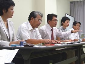 この日の申し入れで田村氏らは、調整池からの排水とアサリの大量死との因果関係が疑われるとして、▼今年4月以降一度もなかった北部水門からの排水を7月に開始、時期を同じくして「海水がしょうゆ色になり魚が網にかからなくなった」との漁民の証言▼8月25日の調査でアサリのへい死率が14%だった長戸地区で、同日、約4百60万立方メートルもの「汚れ水」が調整池から排水されたとたんに全滅になった−などの例をあげた説明しました。
