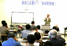 「民主県政をつくる会」などでつくる実行委員会は四日、長崎新幹線についての学習会を長崎市内で開き、約五十人の市民がこの問題について話し合いました。