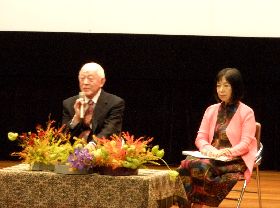 憲法公布六十二周年となる三日、長崎県九条の会は長崎市の長崎大学医学部記念講堂で、「世界がもし100人の村だったら」の著者で知られる池田香代子氏と元長崎大学学長の土山秀夫氏との対話集会を開き、市民約三百人が耳を傾けました。