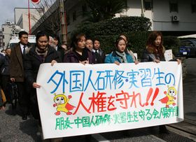弁護団によれば、同様の裁判は全国で21件(「外国人研修生問題弁護士連絡会」受任分)が係争中です。1月29日、熊本地裁で原告勝利の判決が下されています。 |
