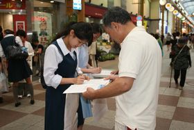 核兵器廃絶を世界に訴える高校生1万人署名の活動をしている男子が署名に応じ、「私たちもやっていますから、黙って通りすぎることはできません」と語りました。