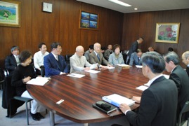 申し入れは、@「飛来中止の要請」をするA今後、佐世保地区での米軍・自衛隊のオスプレイ飛行に対して反対の立場を明らかにせよ―の2点を要求。 朝長市長は「オスプレイの安全性は国民の理解が十分に得られていない。国に対し、安全確保に万全を期すよう求める」と発言しています。申し入れで山下氏は、市長の発言は重要だとし、「オスプレイは来るなと明確に米軍に言うべきです」と求めました。市は「オスプレイ=危険という認識は国民にもあるため、市長コメントがあった。国民に説明するよう政府に求めていきたいが、飛来中止の要請は考えていない」と回答しました。 |