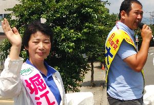 | 憲法9条生かし平和な日本に 終戦の日に宣伝 終戦記念日の15日、日本共産党長崎県委員会は、憲法9条を生かした平和な日本を築くことを呼びかけた街頭宣伝に取り組みました。猛暑の長崎市内で堀江ひとみ県議、大石ふみき長崎市議が宣伝カーから訴えました。 堀江県議は、安倍内閣の戦後70年談話について、「日本が国策を誤り植民地支配と侵略を行ったという歴史認識がまったく語られていない。国内外の厳しい批判を招くことは避けられない」と批判。「過ちを認めない安倍政権に未来は託せない」と述べました。「日本共産党は“戦争法案を許さない”の一点で共同を広げ、戦争法案を必ず廃案に追い込むため全力で頑張ります」と力説しました。 大石市議は「ママ、パパ、じいじやばあばも戦争法案反対に立ちあがっている」として、「いまこそ党派、立場の違いを超えて戦争法案は許さないの声を被爆地長崎から広げていこう」と呼びかけました。 横断歩道から両手をあげて声援を送る若い人の姿がありました。 |