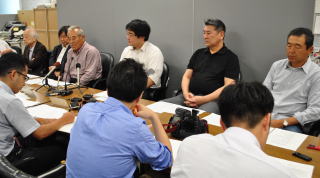 訴えたのは、有限会社「匠集団おおぞら」の荒木隆太郎社長(71)=南島原市=と大崎吉重さん(64)=諫早市=。 訴状では、優良農地とのふれこみにもかかわらず、排水不良や冷害・熱害により作物に多大な被害が発生したり、環境保全型農業の押し付けで、雑草が繁殖しショウガや玉ねぎの収穫ができなかったと主張。このため生じたリース料滞納に対して、公社は作付の制限を強制。結果、両者は5年間で大幅な赤字となり、多額の借金を抱え撤退を余儀なくされたとして損害賠償を求めています。 長崎県庁内で記者会見した荒木氏は「莫大な投資をして夢ふくらませて入植したが、排水不良でジャガイモは腐り、撤退せざるを得なかった」と悔しさをにじませました。公社からの度重なる嫌がらせやリース料の督促などで体調を崩し療養中の大崎氏は「うまいものをつくりたいと入ったが、不良農地のせいで願いはかなわなかった」と怒りを込めました。 |
