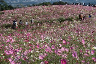 コスモスの名所として知られる、長崎県諫早市・白木峰高原。標高1057bの五家原岳の中腹に広がっています。約1万uの広さに、20万本のコスモスが鮮やかに咲き誇っています。22日の休日には多くの市民が訪れ、きれいな花々に癒やされていました。