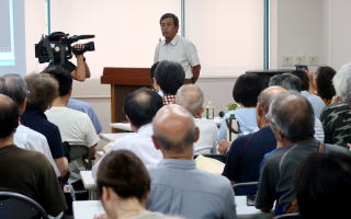 石木ダムを巡っては、県の収用委員会が5月、ダム予定地の地権者に土地を明け渡すよう命じました。家屋などを含まない土地の明け渡し期限は今月19日に迫っています。 「石木川まもり隊」代表の松本美智恵さんは、重大な局面にきていると述べ、「思いを胸に秘めているだけでは何も変わらない、声に出して行動を起こそう。一緒に考え知恵を出し合おう」と呼びかけました。 「石木ダム対策弁護団」の八木大和弁護士が、現在争っている訴訟などについて解説しました。 地元川原(こうばる)の地権者で「石木ダム建設絶対反対同盟」の岩下和雄さんは、「私たちは何世代にも渡りここに生活し、先祖から受け継いだ土地を大事に育ててきている。この土地を子どもや孫に残していきたい」と涙に声を詰まらせました。「佐世保にはこれ以上水は必要ない。佐世保市長が一言『水は足りている』と言えばダムはできなくなる。みなさんの力を貸してほしい」と訴えました。 長崎県立大学4年の女性(25)は「今日初めて話を聞いて、このままじゃいけないと感じた。もっと知りたいと思う」と話しました。 |