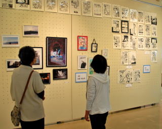 | 長崎県佐世保市の「フリースペースふきのとう」は、9日から佐世保市の島瀬美術館センターで、不登校やひきこもりの当事者が制作した絵画や漫画などの作品の展示会を開催しています。(15日まで) 発足から32年目の同会は、当事者たちの居場所づくりや社会参加を応援し、当事者の親や家族の支援など多彩な活動をしています。 「ふきのとう」の山北眞由美理事長は「コロナ禍のせいで当事者らが置き去りになっている部分がある。子どもたちから外に出られなくても『作品で参加することができる』と提案があり、その声に応えてやってみることにした」と展示会開催の経緯を語りました。 会場には中央に当事者の作品が飾られ、それを取り囲むように日ごろから同会を支援している団体や個人の作品が並びました。 当事者の岩崎梨依奈さんは、幻想的で美しい水彩画を出品。竃中和寿さんのイラスト「黒板より青春の歌をお届けっす」は、ほうきやモップを楽器に見立てて熱唱する学生たちを黒板にチョークで描いています。中村秀治さんのアクション漫画は丁寧に細部まで描き込まれ、来場者は「個性的で素晴らしい」と驚きの声を上げていました。 新婦人佐世保支部の絵手紙や精神障がい者家族会「ゆみはり会」の水絵など、支援団体の多彩な作品も展示さました。 |