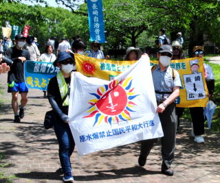 | 2020年原水爆禁止国民平和大行進(長崎−広島コース)が28日、長崎市の爆心地公園から広島に向けてスタートしました。出発集会には約130人が参加。今年は行進コースの短縮など、コロナ感染拡大に配慮して取り組まれています。 「『ヒバクシャ国際署名』をすすめる長崎県民の会」の朝長万左男共同代表は昨年、この公園でローマ教皇が「核廃絶実現にはひとり一人の参加が必要」と強調し、核兵器国の指導者に向けて「あなた方が考えを変えて決断してください」とのメッセージを発信したことを紹介。行進者を激励しました。 被爆者を代表してあいさつした溝浦勝さん(79)は、爆風で吹き飛ばされた瞬間を昨日のことのように覚えていると語り、「核兵器のない世界をつくる、その先頭に立てる政府にするため、私たち被爆者もともに頑張りたい」と話しました。 原爆が投下された11時2分に全員で黙とうし、市内中心部の鉄橋(てつばし)にむけ100人が出発しました。 始めて歩くという高教組の男性(33)は、「以前から平和の問題に関わりたいと思っていた。歩くことでみなさんに核廃絶をアピール出来たら」と話しました。 |