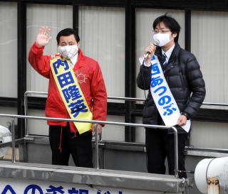 長崎県の日本共産党南部地区委員会は20日、長崎市役所前で街頭宣伝し、内田隆英、中西敦信両市議が、新型コロナウイルスの脅威から市民の命と暮らしを守ろうと訴えました。大石ふみき市議は「自粛と補償は一体で」と地元の同市香焼町で訴えました。