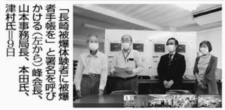 長崎被爆地域拡大協議会は9日、長崎の原爆投下による被爆地域拡大を求める講座をオンラインで開催し、被爆者認定を求める署名を呼びかけました。![]() 同協議会の峰松巳会長は、広島の「黒い雨」被害者が被爆者と認められたことについて、「長崎でも黒い雨が降った」と述べ、国に被爆者と認めるよう求める署名を呼びかけました。 山本誠一事務局長は、20年にわたる被爆拡大運動の歴史を報告。被爆体験者の手帳はがん治療は対象外であり、県内でしか使えないと語りました。 「被爆体験者」の津村はるみさんは、生後19日後に香焼村で被爆しました。半世紀以上たって甲状腺がんを患ったと語り、全ての被爆体験者に被爆者健康手帳を求めました。 全ての被爆体験者に速やかに市被爆者健康手帳の交付を求めて署名を呼びかけた長崎県保険医協会の本田孝也会長が講演。「長崎に原爆が投下され、発生した原子雲は黒い雨や灰を降らせ、2カ月後に長崎の放射線を測定した米国マンハッタン調査団の最終報告書によると、爆心地から12キロメートル圏内に残留放射線が記録されている」と述べました。 被爆体験者は、閣議決定された菅首相談話の「同じような事情」であると指摘。長崎県保険医協会ではYouTubeでも署名を呼びかけていると紹介しました。 |