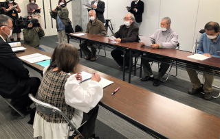 国が定めた地域外で被爆したために被爆者と認められていない「被爆体験者」でつくる「長崎被爆地域拡大協議会」(峰松巳会長)は29日、中村法道知事と田上富久市長宛てに、30日に開かれる被爆者認定制度改正に向けた厚労省との第1回正式協議で、長崎の被爆体験者問題も協議するよう求める要請書を提出しました。 後藤茂之厚生労働大臣が26日の記者会見で、同協議では長崎の「被爆体験者」の救済まで含めていないとの考えを示したことを受けたもの。広島の『黒い雨』裁判の判決を受け、厚労省は被害者救済に向け、被爆者認定制度を改正し、来年4月からの運用開始を目指しています。 要請書では①2002年度被爆体験者制度創設時にさかのぼって被爆者と認定すること②爆心地から半径12㌖内の地域を原爆被爆地域に拡大すること―などを会議の場で協議するよう要請しています。 県への要請には4人が参加。茂木地区で被爆した中橋光義さん(85)は、原爆投下時、母親とともに10㍍ほど飛ばされ火傷も負ったと述べ、「母が死んで初めて、死因は原爆のせいだと分かった」と悔しい思いを語りました。 山崎敏朗・原爆被爆者援護課長が要請書を受け取り、「長崎にも雨と灰が降った地域があり、広島と同じ事象ではないかと国に説明し協議したい」と答えました。 |