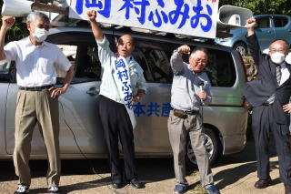 長崎県平戸市議選(定数18、立候補20)が10日告示され、日本共産党は岡村ふみお候補(66)=新=が体調不良のため勇退する山アかずひろ議員の現有1議席を、何としても引き継ごうと立候補しました。 44年間、農協の営農指導員をしてきた岡村候補は「農家のみなさんと苦楽をともにしてきました。平戸を発展させるためには、農業の活性化がまず必要。農業が発展すれば、商店街も活性化し、平戸全体の経済循環がよくなる」と指摘。気候変動で農業・漁業の被害が甚大だと述べ、「これには、行政の支援が必要です。みなさんのあぜ道の声を、市民の声をまっすぐに市議会に届け、頑張ります」と力を込めました。 さらに▽高すぎる国保税は子どもの均等割りをやめさせ、引き下げを▽子ども医療費は高校卒業まで無料に―などの公約を実現するために、何としても議会に送ってほしいと訴えました。
