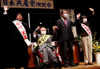 まじま氏は、石木ダムやカジノ推進など、長崎県政で一番欠けているのは個人の尊厳を大事にするということだと指摘。県議補選、市議選、衆院選の勝利で「個人の尊厳が大事にされる優しい社会をつくっていこう」と訴えました。菅政権のコロナ対策を批判。「国の責任で大規模検査を実施し、感染を封じ込めなければならない。国民の命がかかっている」と強調しました。 車イスでの生活を送る本山としひこ県議候補は、石木ダムやカジノではなく、困っている人に優しい県政をと訴えました。中野太陽市議候補は「給食費の無償化」を、西田京子市議候補は「高齢者へのタクシー券支給」を実現したいと力を込め、定数減で激戦が予想される選挙戦を何としても勝ち抜きたいと決意を語りました。 演説会に初めて参加した女性(67)は「今まで政党は自民党しか知らなかった。共産党はとてもいいと思った」と話しました。演説会終了後、40代の女性労働者が入党を決意しました。 |