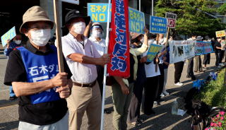 長崎県と佐世保市が川棚町に建設を強行している石木ダムをめぐり、長崎市内の市民団体「いしきを学ぶ会」は27日、石木ダムの建設中止を求めるスタンディングを県庁前で行いました。 県庁の正面玄関前では約50人が、「知事は工事を中止し今すぐ住民との対話を」と書かれた横断幕などを手に、出勤してくる県職員らにアピール。「石木ダムNO」のプラカードを掲げていた内田知也さん(29)は「地元住民から住居を取り上げる権利は知事にはない」と憤りました。 スタンディングに続きメンバーらは、中村法道知事宛てに「石木ダム建設工事をただちに中止し、無条件で住民との対話を実現することを再度求める」要望書を県河川課職員に手渡しました。同会は7月12日にも同様の申し入れを知事宛に行っています。 要望書は「知事は水没予定地の川原(こうばる)地区住民に納得いく説明もしないまま8日、ダム本体工事に着手した」と指摘。住民を強制的に排除しダムを建設した事例は全国どこにもないと述べ、「工事を直ちに中止し、無条件で住民との対話を始める」よう求めています。 同会世話人の森下浩史さんは「社会情勢は変わっているのに、県は50年前と同じやり方。解決に向け、努力するべきだ」と語りました。 日本共産党の安江あや子衆院長崎1区候補が参加しました。 |