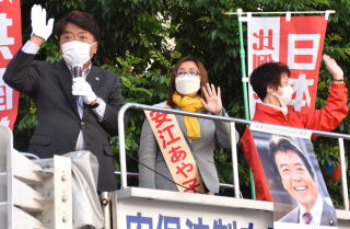 日本共産党の仁比聡平前参院議員は23日、長崎市内の繁華街で安江あや子長崎1区候補と共に街頭演説し、「野党共闘の要である共産党の躍進で政権交代を実現しよう」と呼びかけました。 仁比氏は、核兵器禁止条約参加に背を向ける岸田総理を厳しく批判。「政権交代で、禁止条約に参加し、平和の力で世界に貢献する日本をつくっていこう」と訴えました。 安江候補は、働く女性の7割が非正規雇用であり、その上、コロナ禍で職を失い家庭内暴力にも苦しめられている実態を語り、「ジェンダー平等を共通政策に掲げる野党に政権交代し、個人の尊厳が大事にされ、弱者をつくることのない社会へ変えていこう」と力を込めました。 演説を聞いていた女性(60)は「共産党はブレずに、一番まともなことを言っていると家族で話している。25歳の息子は比例で共産党に入れると言っており、私も原発が嫌なので共産党に頑張ってほしい」と語りました。 ビラを配布中、4人から「投票する」と激励がありました。 |