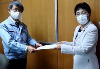 | 長崎県の日本共産党・渕瀬栄子西海市議は18日、杉澤泰彦市長宛てにコロナ対策についての第4次要望書を提出しました。 要望書は、西海市では15日時点で55例目となる患者が確認されているとして、▽市民への情報提供として感染者の発生事例数に留まらず、対応策についても周知すること▽医療機関や介護施設などへの無料の社会的検査について、国に全額国庫負担の行政検査を求めることも含め、PCR検査を拡充すること▽「西海市内事業者緊急応援給付金事業」を再延長すること―などを求めています。 渕瀬市議は「市内でクラスターが発生し、同じ医療圏に属する長崎市に県独自の緊急事態宣言が出されました。市民の不安が大きくなっています。市民の声を元に要望書を提出しますので、ご検討ください」と述べました。 応対した小島明副市長は「要望書については市の対策会議の中で検討させていただきます」と応えました。 |