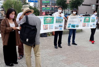 長崎県原水協と市民有志は24日、地球温暖化対策を求める世界規模の行動「世界気候アクション」に取り組み、長崎市内の繁華街でスタンディングと署名・宣伝を行いました。 約20人が参加。北極熊のイラストや「持続可能な世界へ」と書かれたプラスター、気候危機の現状を写真などで示した横断幕を掲げ、市民らにアピールしました。 署名は、気候危機打開のために行動する若者たちの団体「フライデーズ・フォー・フューチャー(FFF)長崎」が県に対し、「気候非常事態宣言」を出すことなどを求めているもので、9月議会に請願書を提出しています。 中学2年の女子生徒は「自由研究で温暖化について調べて、氷河が溶けだしているのを知った」と話し署名しました。 FFF長崎のメンバーで大学院2年の柳原沙紀さんが参加し、「インターネットで署名を集めていましたが、目の前で直接署名してくれる姿を見て一筆の重さを感じた。やっていることは間違っていない、同じように危機感をもっている人がいると感激した」と語りました。 諫早市でもスタンディング行動が取り組まれました。 |