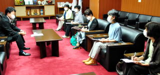 | 長崎県の新日本婦人の会諫早支部は14日、今年4月の市長選で初当選した大久保潔重市長が公約に掲げていた「学校給食費の無償化」「中学卒業までの子ども医療費助成をすべて現物給付に」などについて懇談しました。 黒田洋子支部長は「2つの公約は新婦人が長年求めてきたことで、非常に喜んでいる。今後の見通しについてお話をうかがいたい」と語りました。 大久保市長は「子育て世代を応援しようとの思いがあり、給食費無償化と医療費助成の拡充、第2子の保育料減免を大きな3つの政策として、できることから実現したいと思っている」と答えました。 黒田氏は「コロナ禍で市民の生活は厳しい。親子が安心して暮らしていけるというのは大事。ぜひ、実現してほしい」と求めました。 大久保市長は「高齢者の交通費助成」についても、新婦人も参加する「高齢者交通費助成制度を求める市民の会」からの公開質問状に「市の施策として実現したい」と回答しています。 同会の会員でもある日本共産党の西田京子市議も参加しました。 |