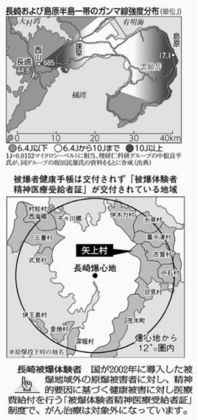 国は、被爆地域を自治体で線引きし、旧長崎市内、隣接市外の一部の指定地域にいた人だけを被爆者とし、その地域外の人は、被爆地域の半径12キロの圏内であっても被爆者とは認めず、「被爆体験者」としました。
