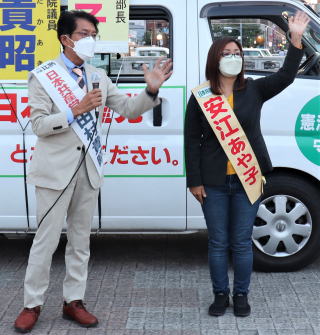 日本共産党の田村貴昭衆院九州・沖縄比例候補は26日、長崎県内を駆け巡り、街頭から「共産党を広げに広げて、比例九州・沖縄で複数議席の獲得を」と呼びかけました。 佐世保市の川棚町では駅前で演説し、工事が強行されている石木ダムの建設現場を訪れ、抗議の座り込みを続ける地元住民らを激励。長崎市内の繁華街では安江あや子衆院長崎1区候補とともに訴えました。 田村候補は、気候危機の問題にふれ、8月の雲仙温泉での大規模な土砂災害を始め、九州に毎年、豪雨水害がもたらされていると指摘。岸田政権の「エネルギー基本計画」や九州電力による、自然エネルギーの出力制御などを批判し、共産党の「2030戦力」を紹介。「政権交代で地球の未来を守り、若い人たちに引き継いでいこう」と訴えました。 安江候補は「生涯で1億円にもなる男女の賃金格差をそのままにはしておけない」と力を込め、「財界、大企業いいなりの政治では。変えられない」と政権交代を呼びかけました。 各候補者の演説を聞いて、参考にしているという大学4年の男子学生は「共産党の話は、生活者の目線で語られていて共感できる」と話しました。 |