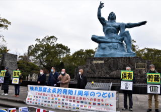 長崎被災協の田中重光会長は「3月の締約国会議では被爆者に対する支援も話し合われる。政府はオブザーバー出席し意見を述べて、核廃絶のリーダーとして役に立ってほしい」と力を込めました。原爆遺族会の本田魂会長は、被爆者の故山口仙二さんが「2度と自分のような犠牲者をださないためにも、被爆したこの顔をみなさんに覚えてもらいたい」と語った言葉が忘れられないと話しました。
