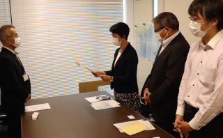 日本共産党長崎県委員会は25日、長崎県内における陸上自衛隊の輸送機オスプレイの訓練に反対し、政府に中止・撤回を求めるよう申し入れを大石賢吾知事にあてて行いました。原口敏彦書記長、堀江ひとみ県議、中西敦信長崎市議が県庁を訪れました。 オスプレイの訓練を巡っては、九州防衛局が22日に県内初の飛行訓練を26、27日に海自大村航空基地(大村市)と陸自相浦駐屯地(佐世保市)で実施すると発表。「水陸機動団」の隊員も参加するとしています。 申し入れ書では「今回の訓練は、目視によらず計器のみに依存して行う計器航行訓練など、初めての実戦訓練を行おうとしている。オスプレイは初飛行から何度も重大事故を起こし、安全性も問題が指摘されており、県民に不安の声が広がっている」と述べ、「断じて容認できない」としています。 申し入れ書を受け取った多田浩之危機管理監は「防衛施策に関しては国の専権事項で中止を求める立場にない」と回答。堀江県議は「県民から断じて許されないとの声が届いている」と述べ、原口氏が極めて危険な訓練が本県で行われることについての認識を問うと「コメントする立場にない」と語りました。 原口氏は「東アジアの緊張が高まるなか、心配されているのは日本が巻き込まれるのではないかということ。緊張を取り除くという立場で当たるべきだ」と指摘し、訓練中止を求めました。 |