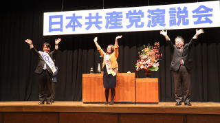 小池氏は、共産党への疑問に答える「はてな」リーフの中身を縦横に語り、市民と野党の共同をめぐって立憲民主党と候補者調整の開始で合意したと報告。「重要な一歩だが、『本気の共闘』にするためには政策の合意、対等平等・相互尊重の確認が必要だ」と述べ、「共闘を前に進める特効薬は共産党の躍進だ。『比例は共産党』と広げに広げ、力を合わせてこの国の政治を変えよう」と訴えました。