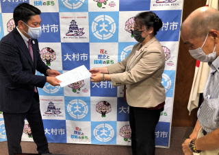 長崎県大村市で日本共産党の永山真美市議は22日、園田裕史市長に対し、統一教会と大村市との関係について調査するよう申し入れました。 永山市議と党大村市委員会の岡武征氏が大村市役所を訪れ、園田市長に申し入れ書を手渡しました。 申し入れ書では「住民の福祉の推進を目的とする地方自治体が、統一教会と一切関係を持つべきではない」と指摘。▽統一教会関係団体との関与について各部局で調査を行い公表すること。寄付を受けていた場合には返還すること▽関与したことが判明すれば、今後一切関与しないことを市民に公表すること―として、文書で回答するよう求めています。 園田市長は、現在調査中だと回答しました。 |