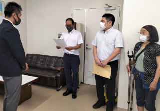 長崎県の佐世保市平和委員会と佐世保原水爆禁止協議会は26日、県内での陸上自衛隊の輸送機オスプレイの訓練中止を政府に対し求めるよう朝長則男佐世保市長に要請書を提出しました。日本共産党の小田徳顕市議が同席。基地政策局の職員が応対しました。 オスプレイの訓練を巡っては、九州防衛局が県内初の飛行訓練を26、27日に海自大村航空基地(大村市)と陸自相浦駐屯地(佐世保市)で実施すると発表。相浦駐屯地では「水陸機動団」の隊員も参加する予定です。 要請書では、米軍のオスプレイが6月に墜落事故を起こし4人が死亡するなど、今なお事故、墜落などが相次いでいると指摘。「私たちは佐世保市民の安全のために、佐世保市でのオスプレイの訓練の中止を求める。また米軍と一体となって訓練を続けている『水陸機動団』との訓練は、東アジアの緊張を一層高めるだけであり、オスプレイの訓練は中止以外にない」としています。 「水陸起動団」の部隊がある相浦町に住んでいる真如詠子さんは申し入れを終え、「オスプレイが私たち住民の上空を飛び交うとなれば、事故がいつ起きるかわからない。市長は住民の命を守る立場であれば、簡単に了承できないはず」と憤りを口にしました。 |