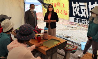 県と佐世保市が川棚町に建設を強行する石木ダムの工事現場では、水没予定地にくらす住民や支援者が毎日、抗議の座り込みをしています。安江候補は、6年ほど前から座り込みに参加し、住民らと交流を続けてきました。 現れた安江候補に、住民らは「忙しいのによく来てくれた」と大歓迎しました。同行した山下満昭県委員は、安江候補が第一声で、「私の政治活動の原点は石木ダムです」と語ったと紹介。安江候補は「参院選の中で国が関わる石木ダム事業の問題を訴えていきたい。地元の声には目を背けません」と決意を語ると、住民から「がんばって」と拍手が起こりました。 |