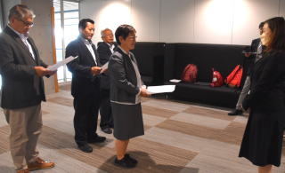 長崎県の離島・対馬市の高レベル放射性廃棄物(核のごみ)最終処分場の文献調査受け入れをめぐり、比田勝尚喜市長が「受け入れはしない」と表明したことを受けて9日、「民主長崎県政をつくる会」は大石賢吾知事に対し、被爆県長崎として、核のゴミ受け入れに明確に反対表明するよう求める要請を行いました。 大石知事は、比田勝市長の表明を受け「県としても対馬市の判断を尊重したい」とコメントしています。 要請書は、核のゴミ受け入れは、対馬の漁民にとっても死活問題であり、子育て世代からは「子どもの代まで影響を及ぼすかもしれない」と不安の声が寄せられていることを紹介。長崎の「被爆体験者」や被爆者の問題にもふれ、「安全性が確立していない『核のゴミ』受け入れは、被爆県の県民にとって受け入れがたいものである」と訴えています。 日本共産党の内田隆英・衆院長崎1区候補が参加。「県知事として核のゴミは受け入れられないと明確に態度表明を」と訴え、徳永隆行代表世話人は「対馬市近海に活断層が見つかり市民は不安だと思う。深く受け止めて知事の判断を」と求めました。応対した職員は「知事に伝える」と答えました。 要請後、山下優子事務局長は「これは対馬だけの問題ではなく県全体の問題。ともにがんばっていきたい」と語りました。 |