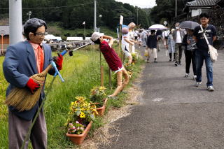 長崎県波佐見町で23日、21回目になる「鬼木棚田まつり」が開かれました。ユニークなかかしを飾り付けることで知られており、この日も多くの人達が訪れていました。 約100体の中には、大谷翔平選手、将棋の藤井聡太七冠など、今年話題になった多数の有名人のかかしが展示されています。長崎出身で「案山子(かかし)」をヒットさせた、さだまさしさん自身のかかしも。 庶民の目から見て今の政治を風刺するものも見られ、「老婆のつぶやき」と題された「かかし」には、「マイナンバー ナンマイダー 取り残されています」の文字が。チコちゃん人形の「かかし」は「異次元の小チコ対策」と題して、「ぼけーっとするんじゃないよ」と総理にカツを入れていました。「視察ですか? 観光ですか? 女性議員殿」と題した「かかし」は赤いコートが目立ち、人々の目を引いていました。 長崎市から訪れた女性は「初めてですが、かかしを作った人達の気持ちが素直に伝わって来るような気がしました」と満足げに話していました。 「まつり」は当日だけですが、かかしは10月中旬まで展示されています。 |